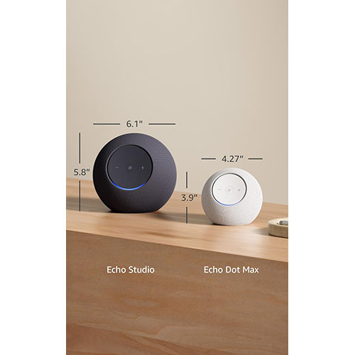 Connect compatible Echo devices in different rooms, or pair with a second Echo Dot Max to enjoy even richer sound.