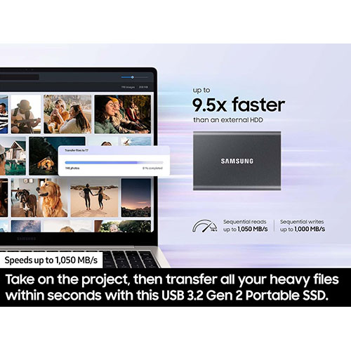 Samsung T7 1TB External USB 3.2 Gen 2 Portable SSD – Titan Gray